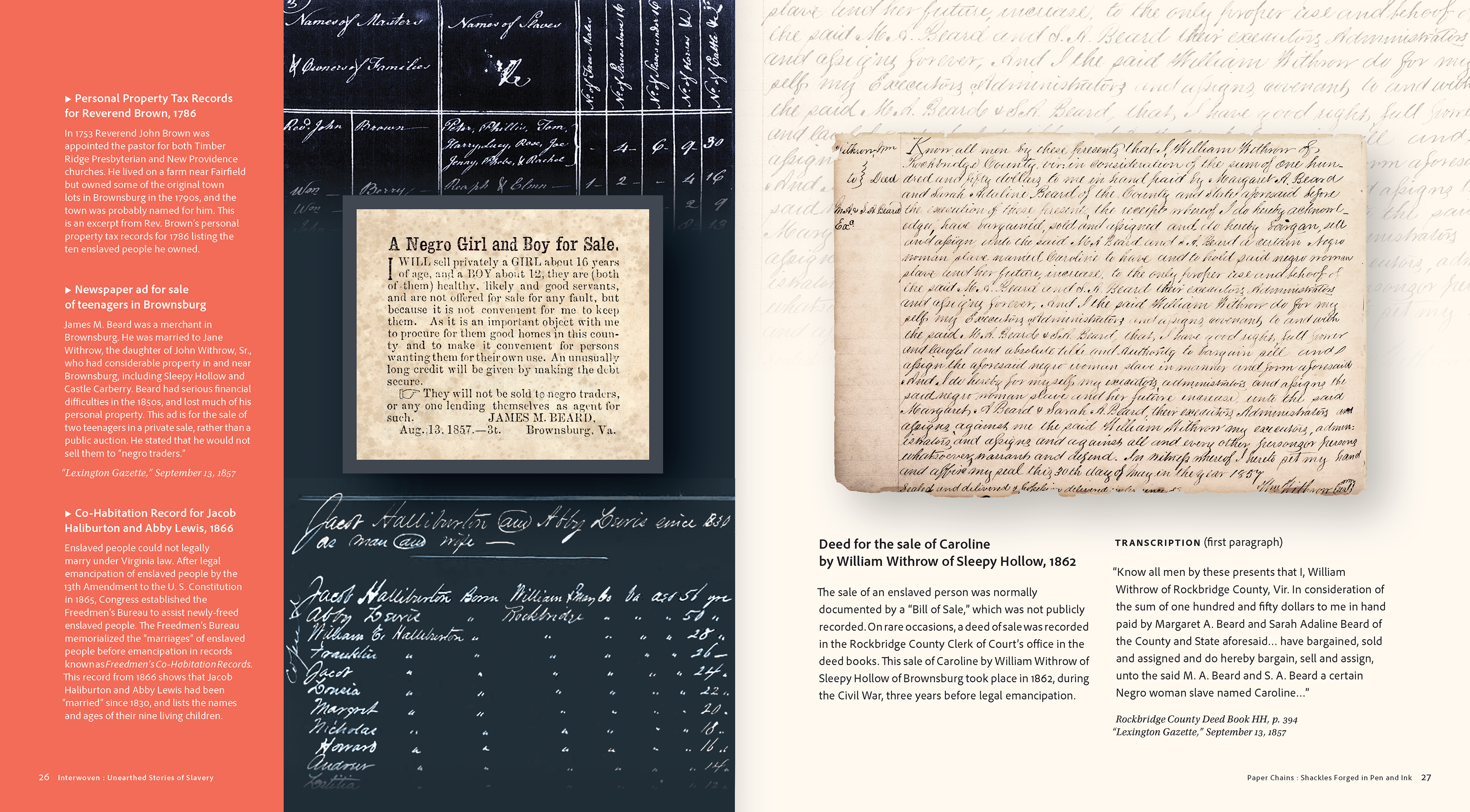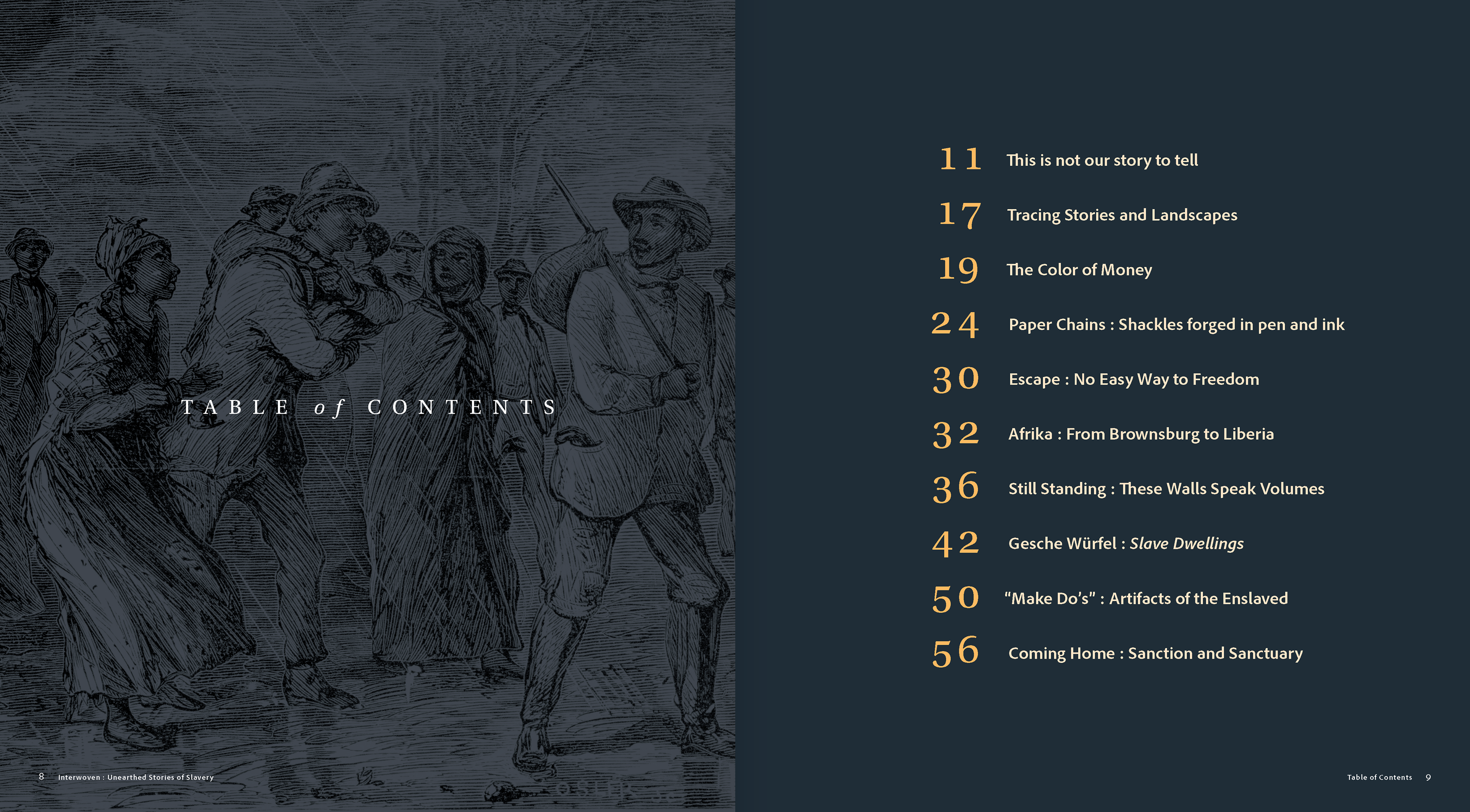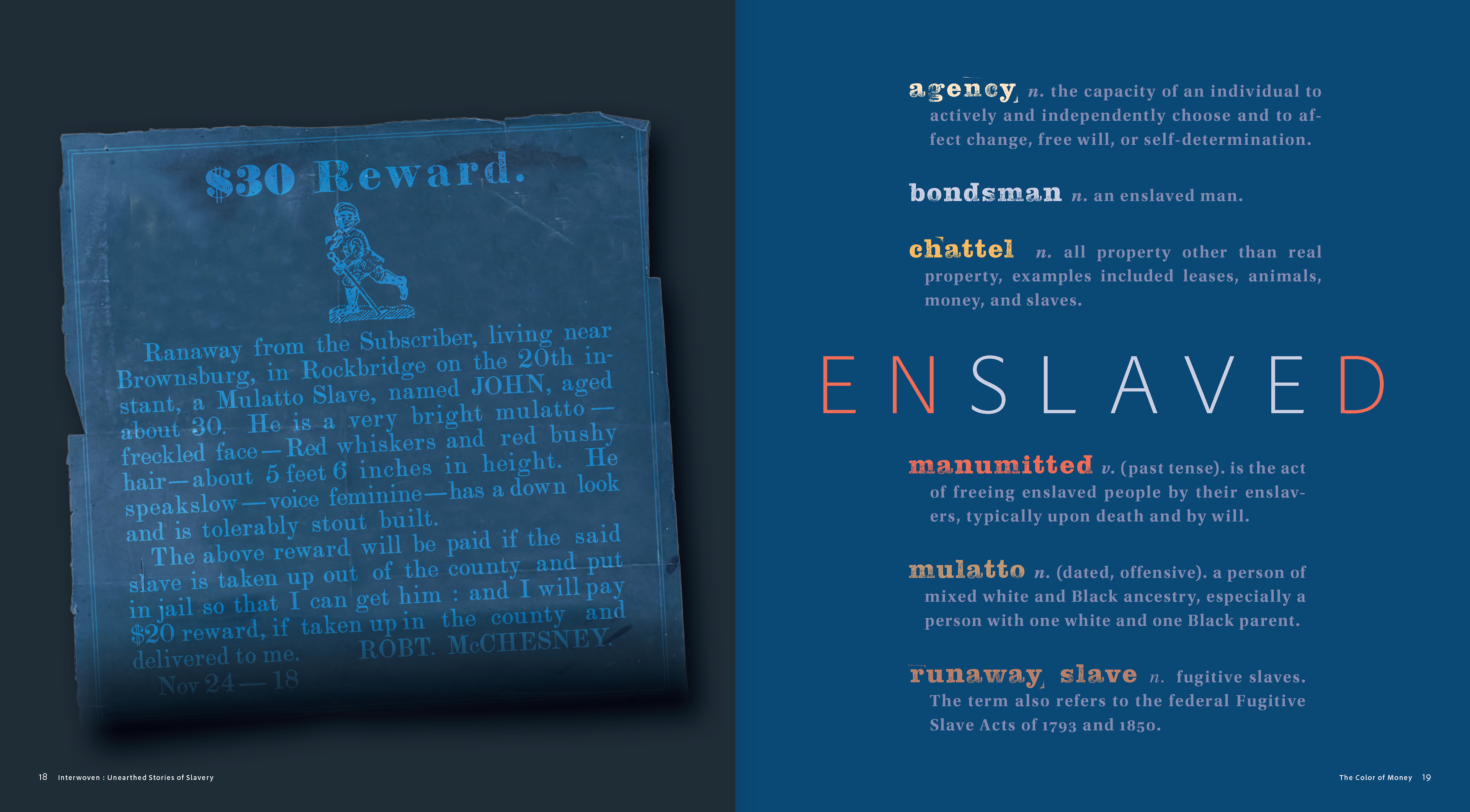 Catalogue for “Interwoven: Unearthed Stories of Slavery” exhibit.