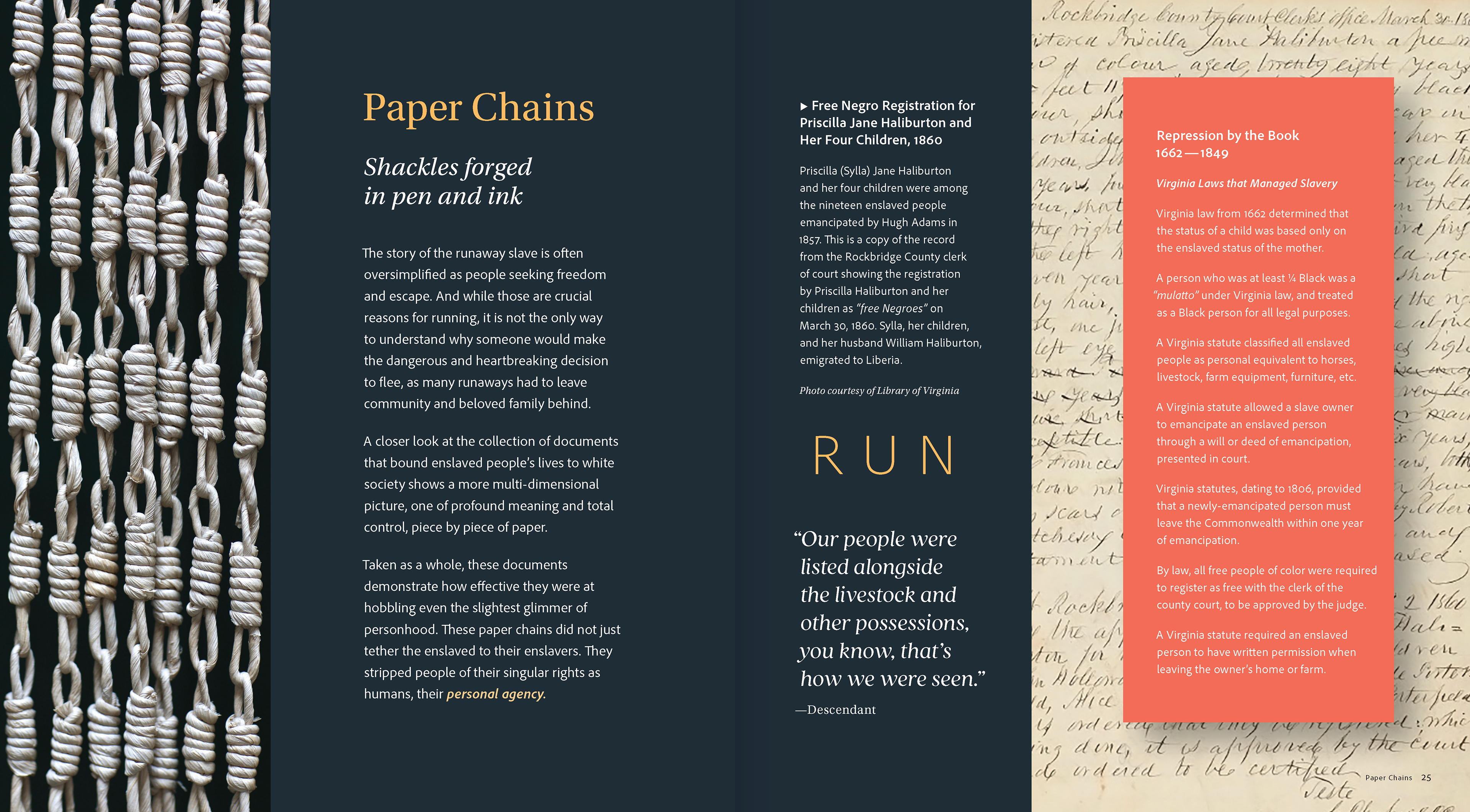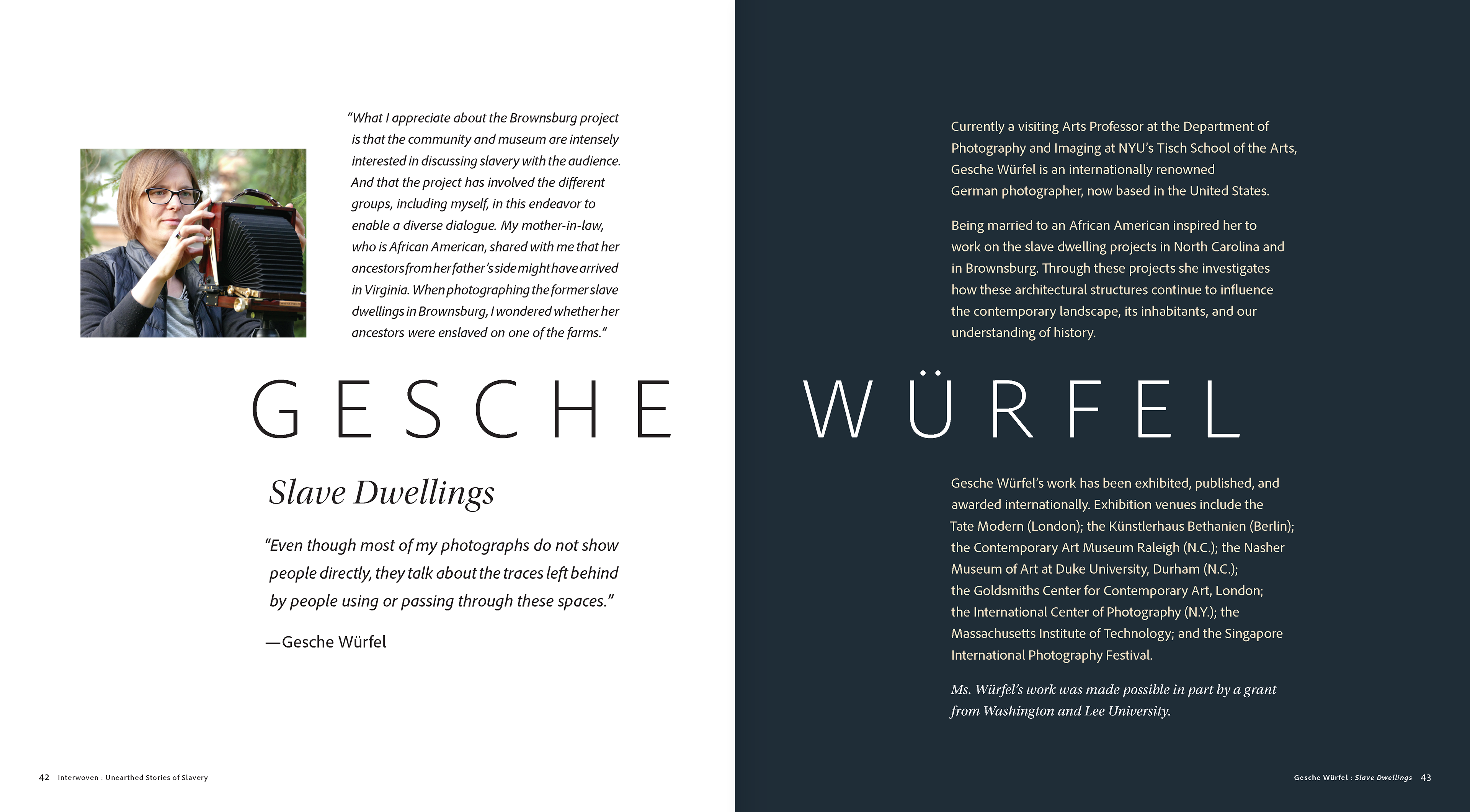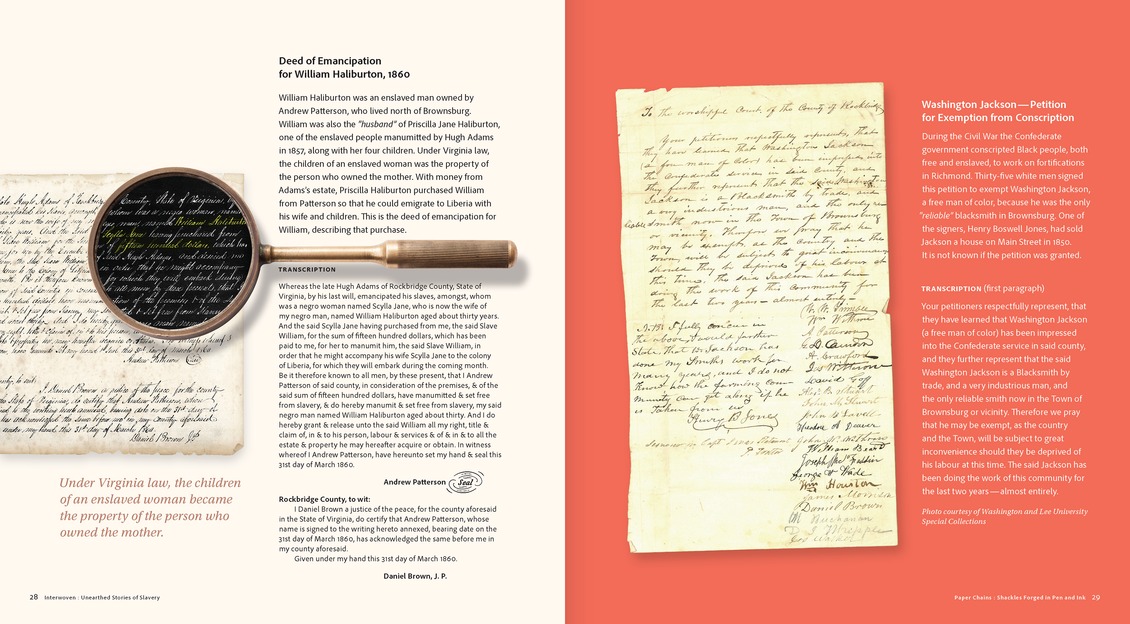 Catalogue for “Interwoven: Unearthed Stories of Slavery” exhibit.