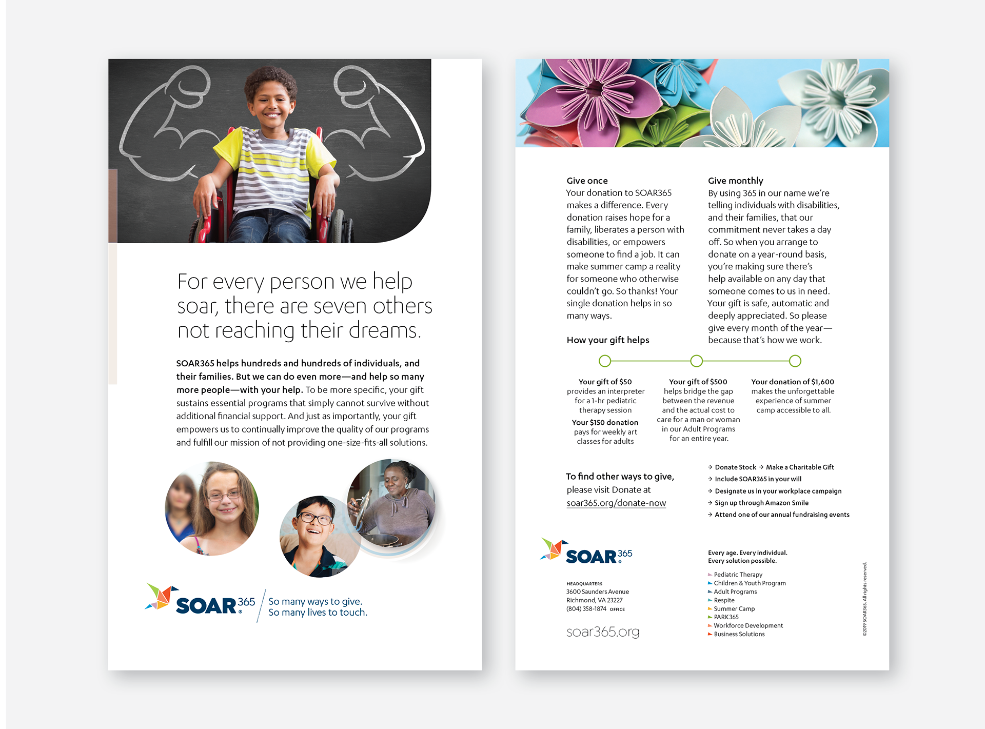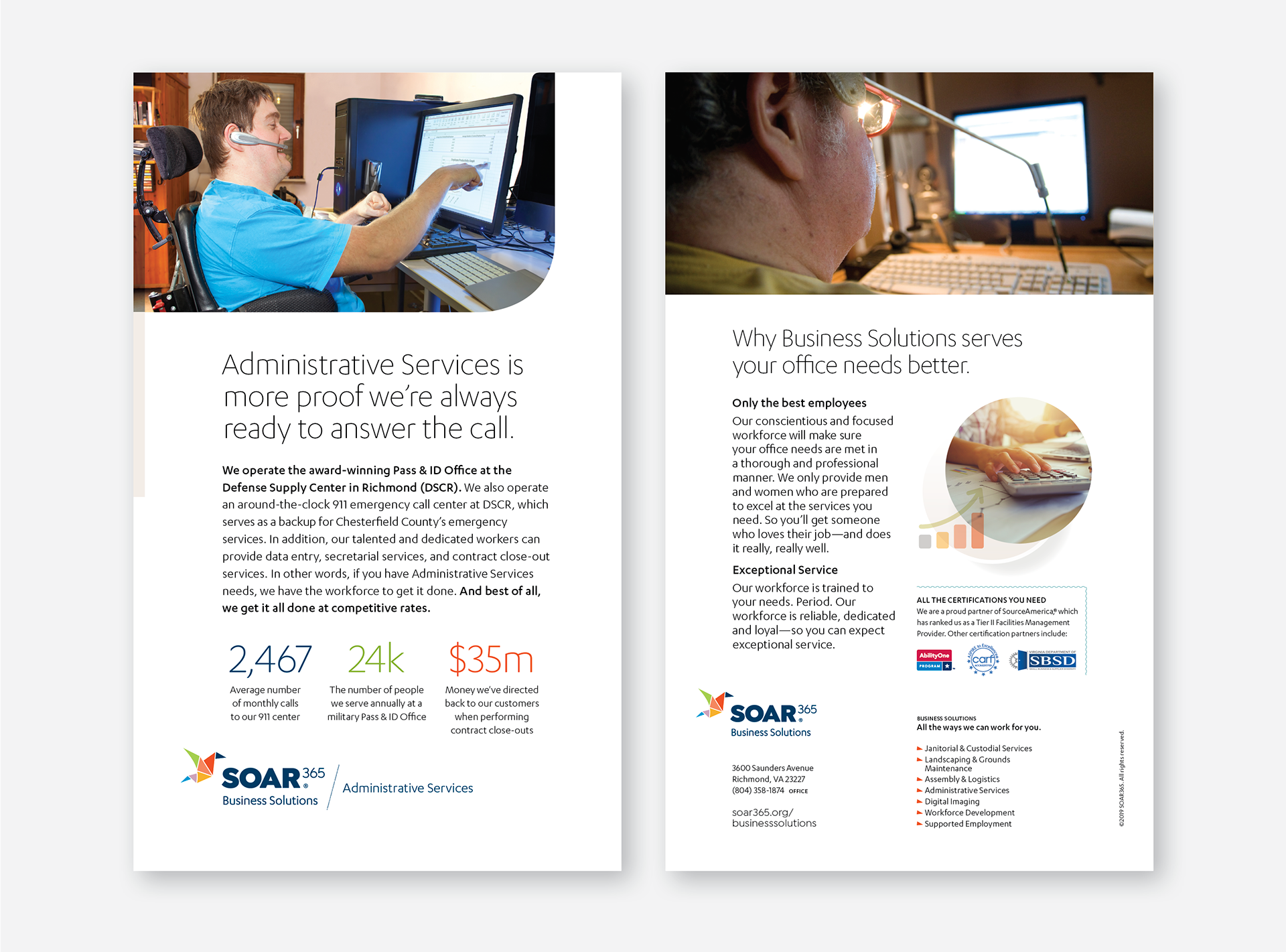 SOAR365 helps individuals with disabilities reach their true and full potential. They address real world problems with real world solutions that provide every individual—and his or her family—with the services that best fit their needs, desires and abilities. Today they have a profound impact on the lives of over 1300 individuals, including meaningful employment opportunities for more than 200 individuals with disabilities.